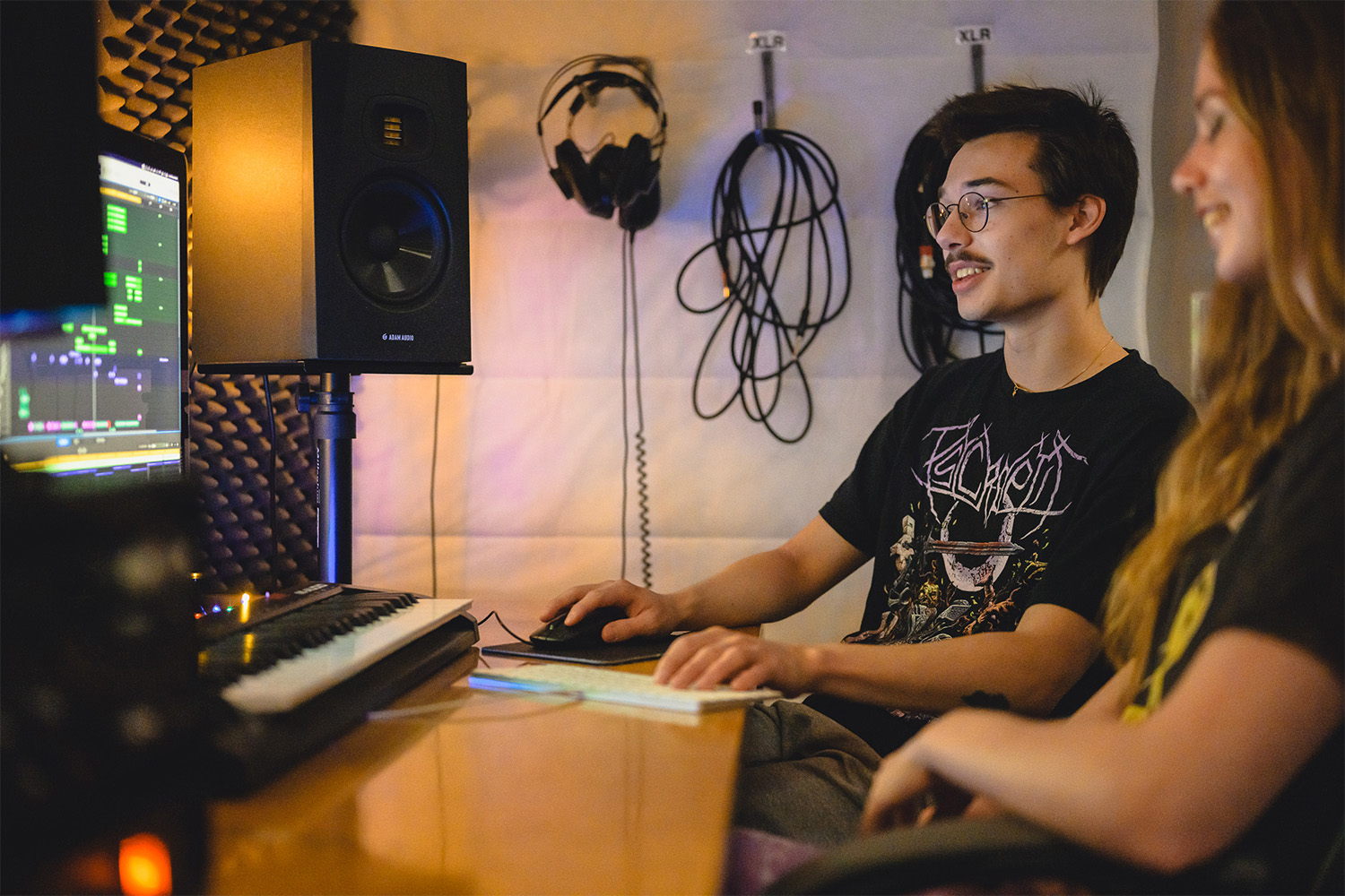 ”Att man får prova på att boka spelningar, arrangera event och att marknadsföra sig själv eller sitt band. Jag har av det fått ett större självförtroende och vågar nu ikläda mig ledarrollen och ro i land större projekt. Jag kunde nästan ingenting om musikproduktion när jag började här, men nu är jag i full gång med att spela in och producera en egen EP.” – Emelie Oreskovic-Rönnbäck