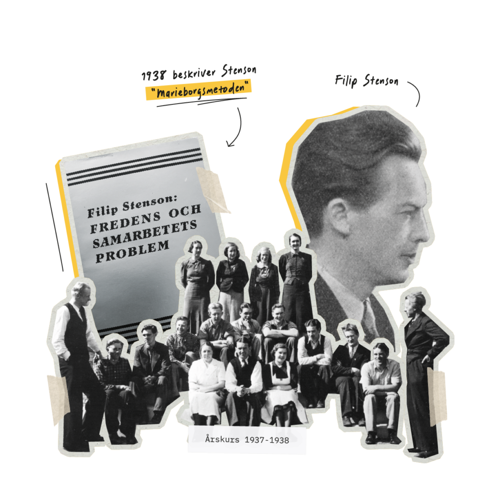 Filip Stenson var den pedagogiska ledaren för Marieborgs folkhögskola under de första åren. Som en driven visionär satte Stenson en tydlig prägel på skolans verksamhet. Hans pedagogiska idé byggde på att integrera kunskap i tre övergripande problemområden där alla delar samverkade till en helhet, istället för att och dela upp kunskap i olika ämnen. Ett centralt inslag i hans metod var även det internationella perspektivet, med fokus på globala studier. År 1938 publicerades boken Fredens och samarbetets problem, där den så kallade Marieborgsmetoden utförligt beskrivs.