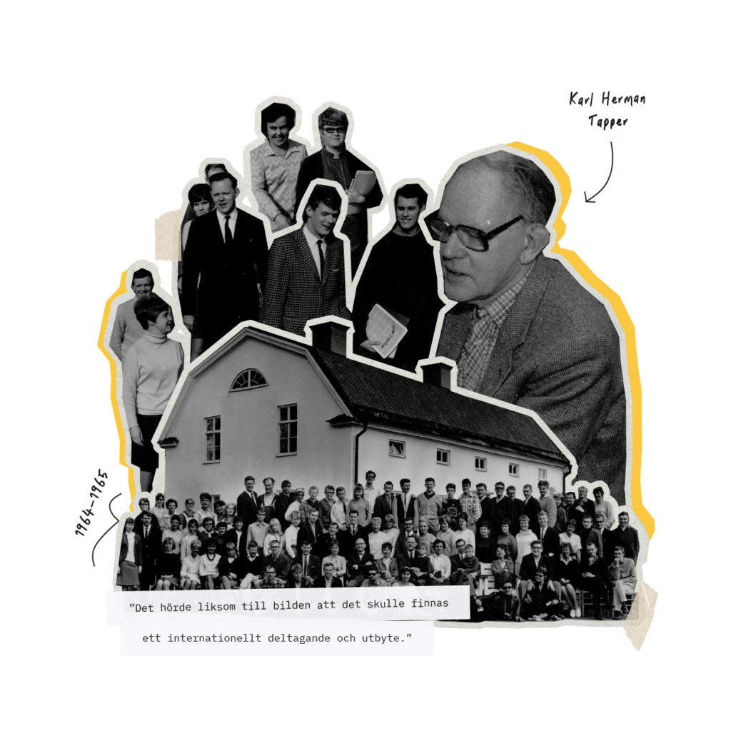 Samtidigt präglades verksamheten av den tidens politiska engagemang, med inslag som Vietnamprotester i Stockholm och antikrigsdemonstrationer. Skolan organiserade även många internationella utbyten, studieresor, gästföreläsningar och kortare kurser, bland annat med fokus på Södra Afrika och globala frågor.
